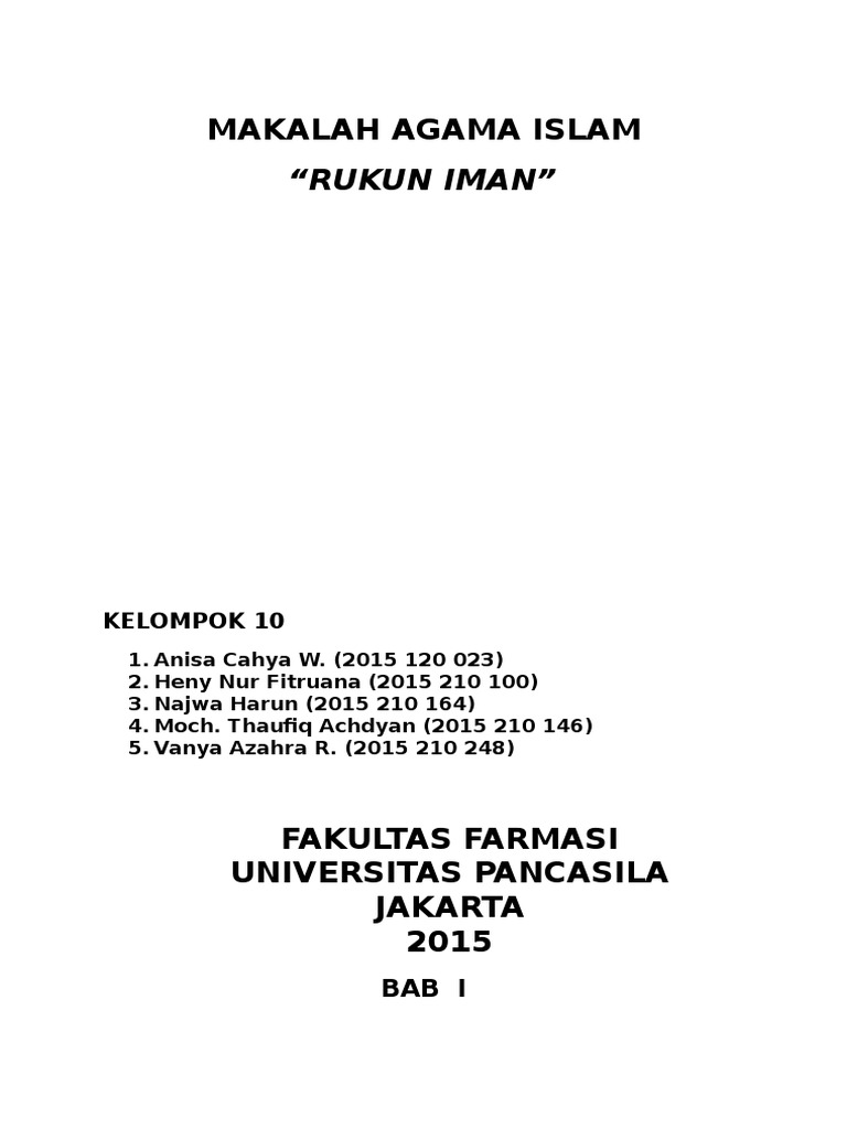 Yang tentu saja harus diyakini semua umat, sesuai dengan urutannya yang benar. Rukun iman yang pertama ini berarti, kita harus meyakini dengan sepenuh hati bahwa allah yang menciptakan seluruh makhluk yang ada di langit, bumi, dan seluruh alam semesta. Seharusnya seorang muslim sudah mengetahui. Rukun iman telah dicantumkan atau disebutkan di dalam al qur'an pada surat al baqarah ayat 177 dan secara uluhiah yang berarti bahwa tidak ada dzat yang berhak disembah kecuali allah dan. Menurut istilah, iman mempunyai 3 poin yang amat penting yaitu: Rukun iman termasuk pondasinya islam. Percaya pada alloh swt 2. Maksudnya disini bahwa kita wajib untuk mengimani bahwa semua yang telah allah takdirkan, apakah itu kejadiannya baik dan buruk maka itu semual bersumber dari allah. Rukun iman ada 6 yaitu : Sedangkan lima rasul yang juga disebut ulul azmi karena memiliki ketabahan luar biasa dalam menghadapi umatnya ada lima yakni, nabi muhammad saw, nabi ibrahim as, nabi musa as, nabi nuh as, dan nabi isa as. Malaikat berdasarkan sisi bahasa disebutkan bahwa malaikat malik memiliki tangan serta kaki yang jumlahnya sama dengan jumlah. Rukun iman adalah iman yang wajib diyakini oleh semua umat muslim. Sehingga tidak akan ada yang.